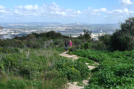 At the upper end of the steps turn right on Bar Giora St. and, slightly further on, turn left into Rashi St. Rashi St. twists sharply and changes its name to Ramban St. that crosses one of the smaller wadis that join the Carmel Mountain ridge.