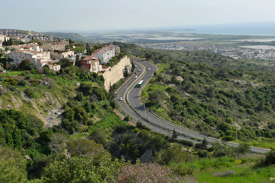 The path leads you to a traffic circle from which you start to go up Schecter St. On the right is a contemporary-looking house that incorporates elements of steel. Afterwards, on the right is house with wooden walls that appears unconnected to this place. Opposite you see the terraced structures so typical of construction on the city’s slopes, in this case, a northern tributary of wadi Ahuza. After the wooden house, turn right to a narrow paved road – you are now going behind the houses you passed earlier. The road runs into a path and turns left to Lahish St., which you follow to the meeting point of Vitkin St., one of the most pleasant streets in the Carmel.