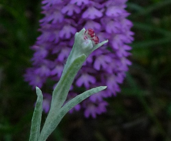 The remainder of the track is marked in blue and leads down the incline of the ravine. Here, the different character of the two slopes that define the ravine may be seen. The slope on the right faces south, it is more exposed to the sun and is characterized by sparse vegetation, while the left slope faces north, is shady and therefore has richer vegetation.
